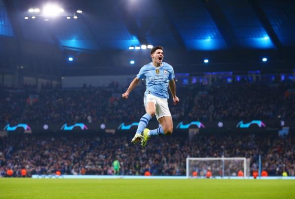 4月26日讯 英超第29轮补赛,曼城暂4-0客场领先布莱顿。阿尔瓦雷斯为曼城打进锦上添花的第四球。